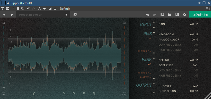 ダイナミクス調整 → Softube / Clipper