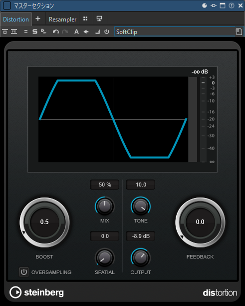 - Mix:dry/wet、ドライブの調整