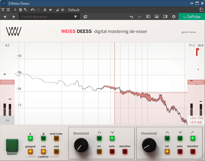 ディエッサーで軽く減衰させているが、実質はEQのロールオフと大差ない。