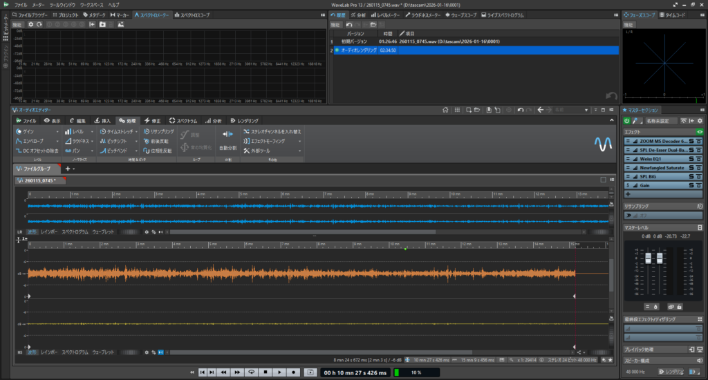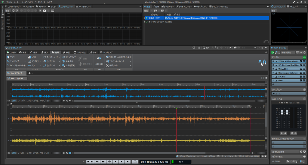 位相調整、Sideをやや後ろにシフト+低域モノラル化