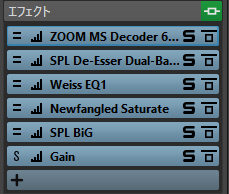 EQ、ローとハイのカット+800Hzより下をやや減衰