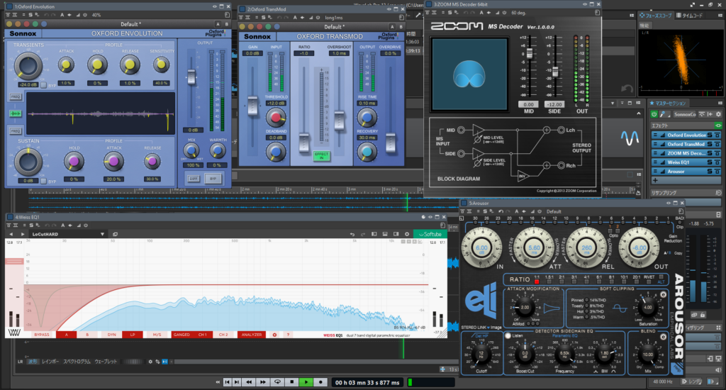 - 低域ランブルの整理 → リニアフェイズEQで 80Hz/12dB でカット。